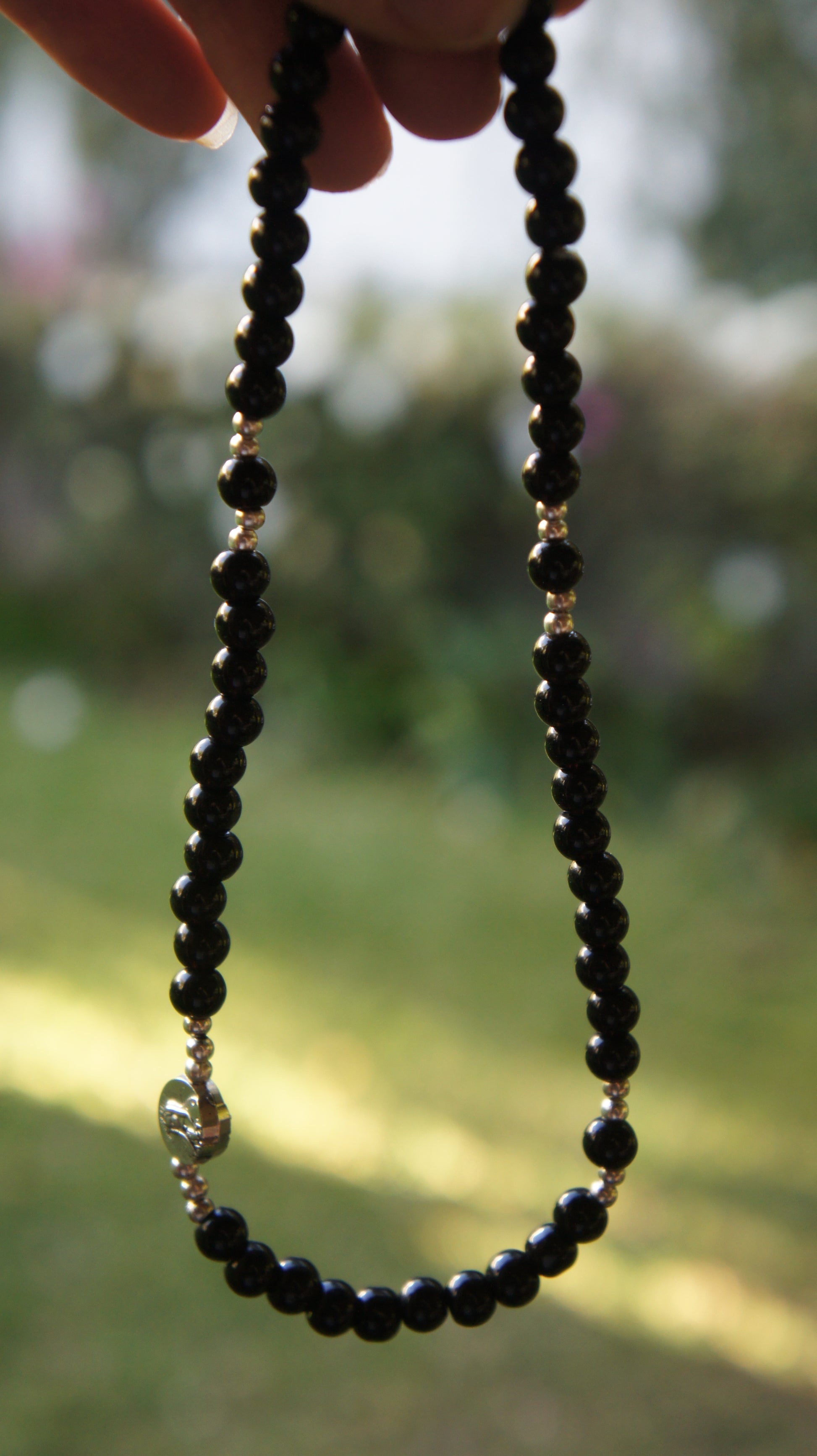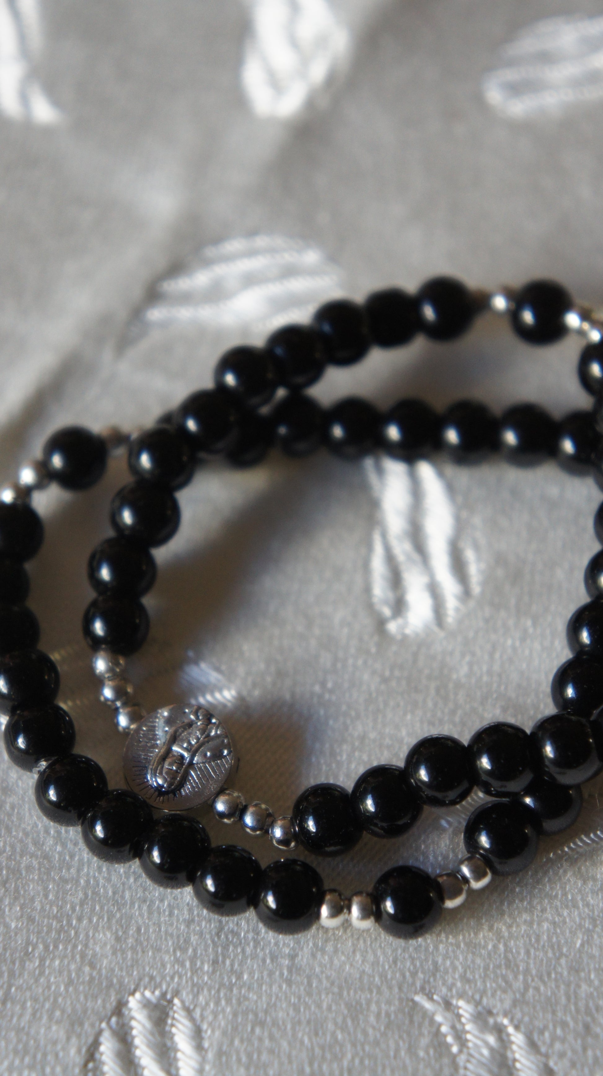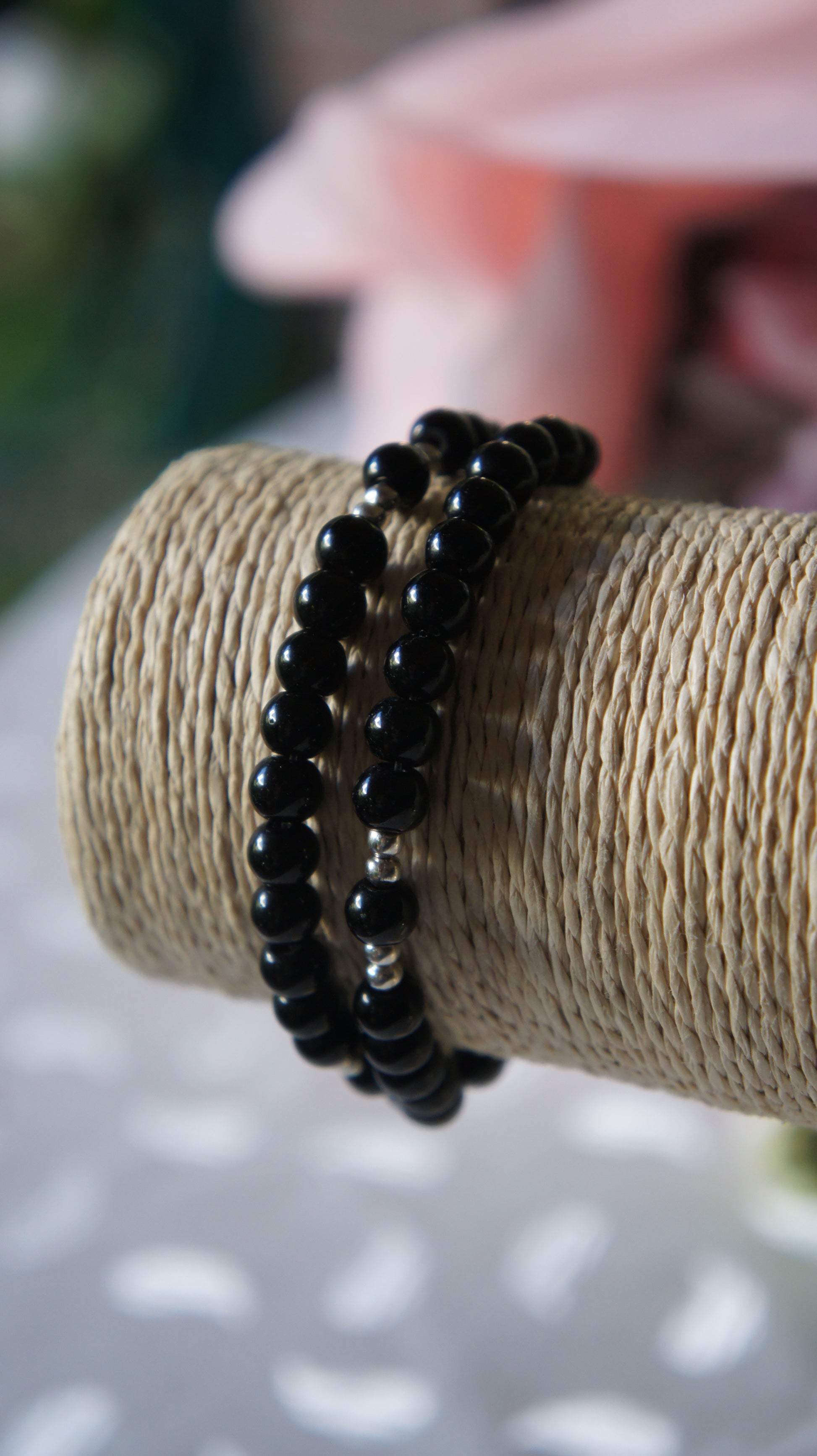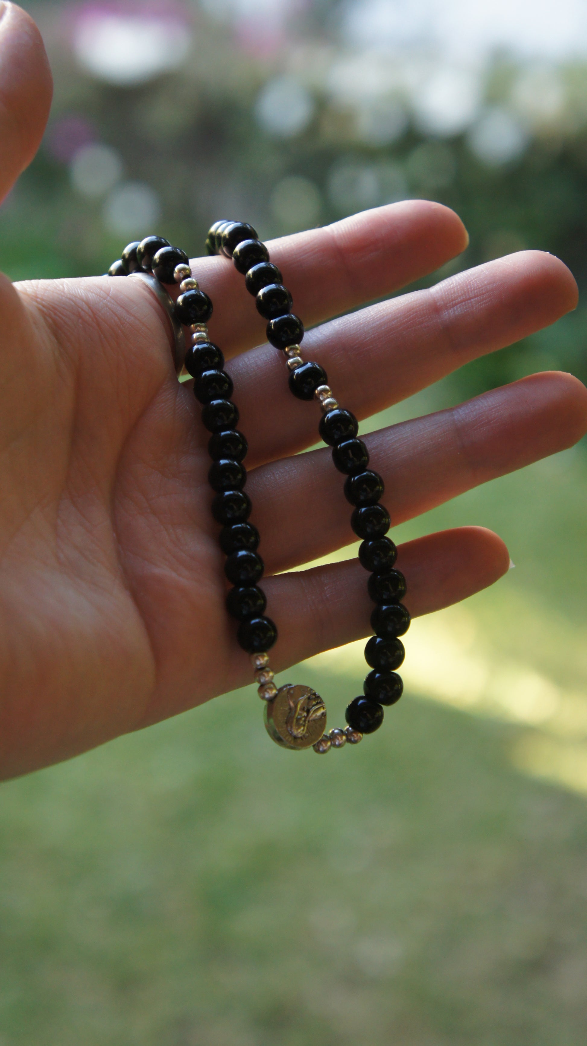 - Rosario de mano en cuentas y elástico.