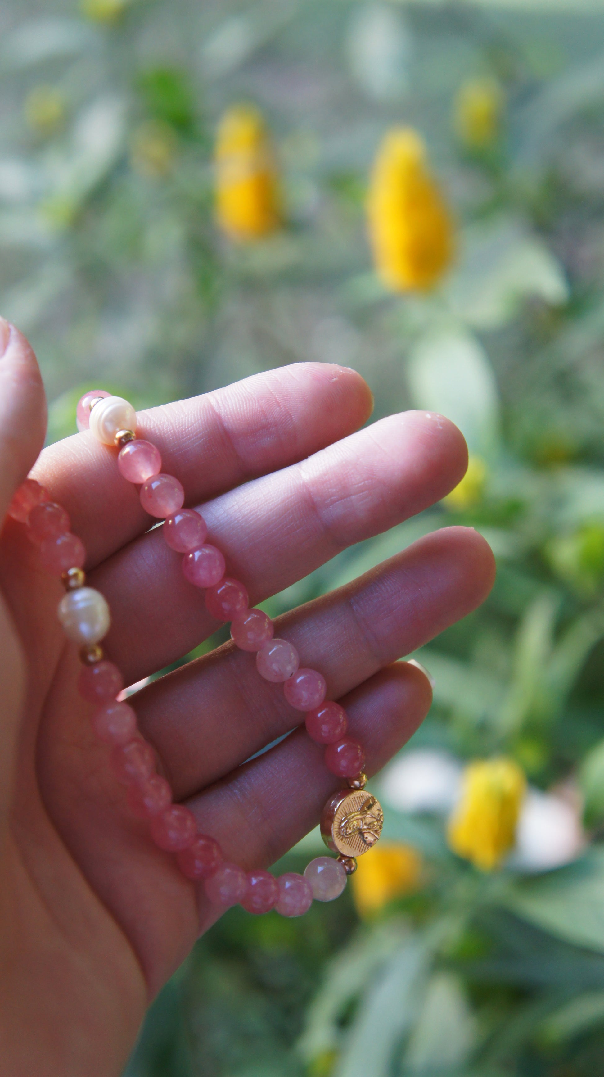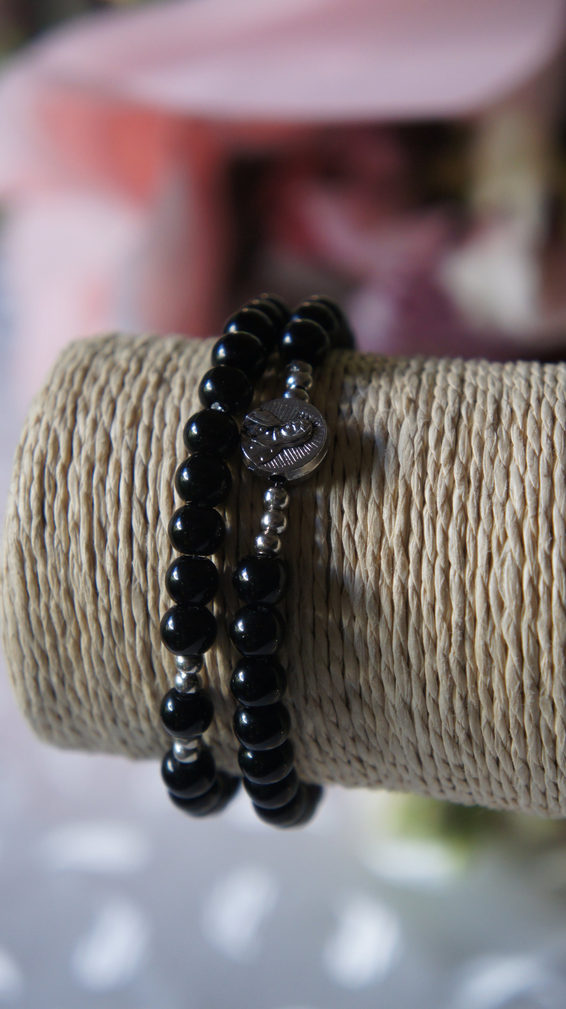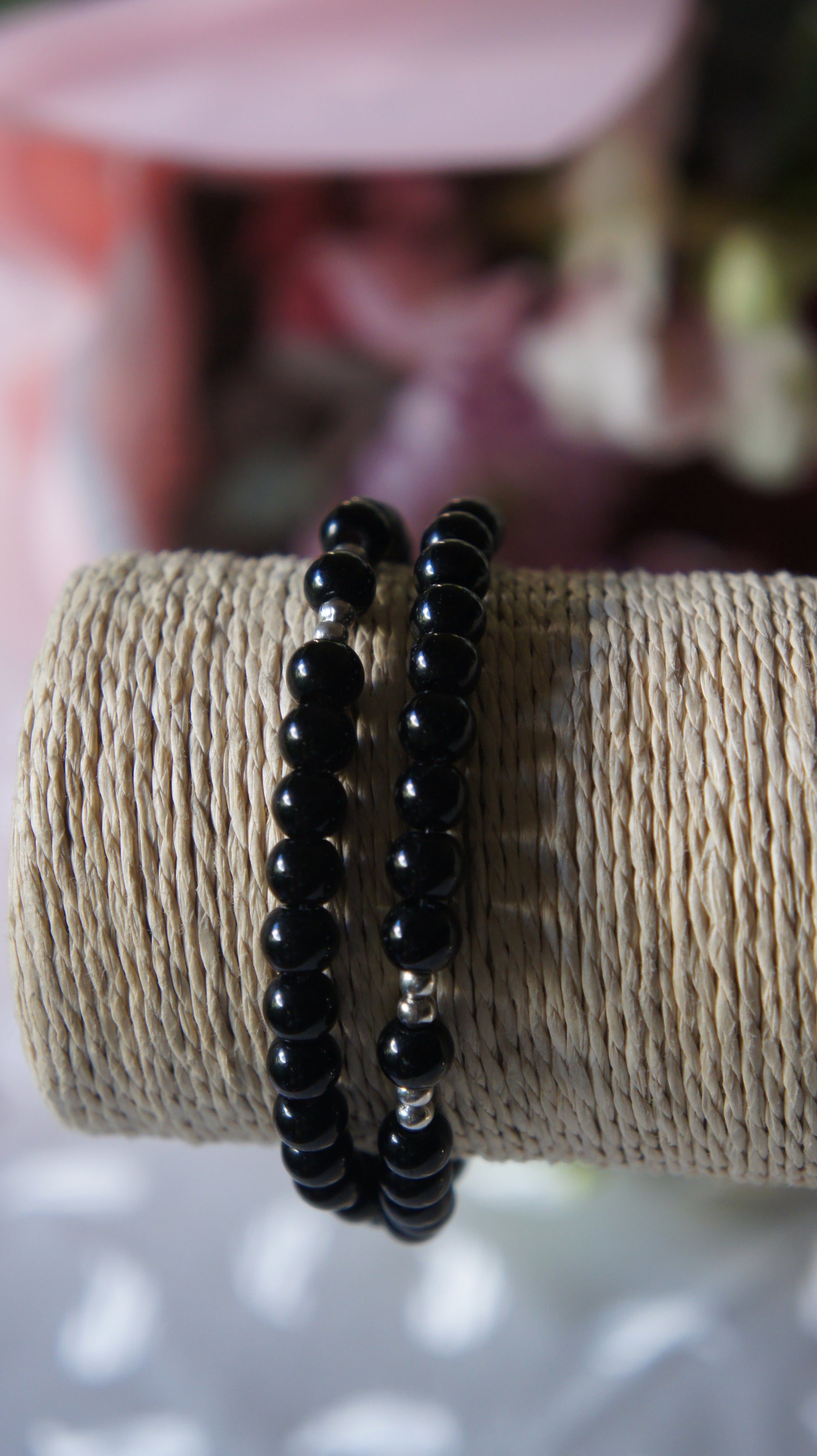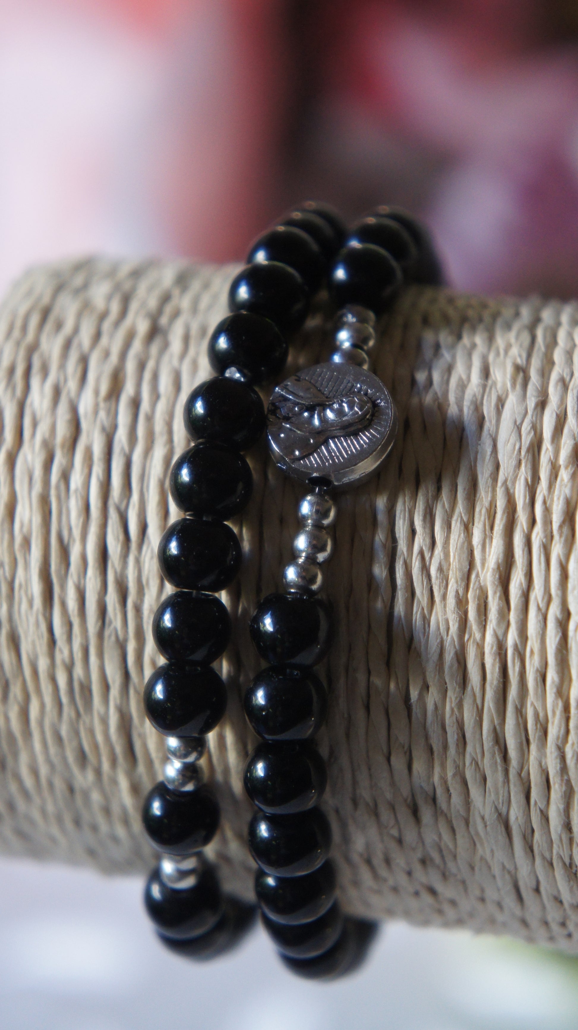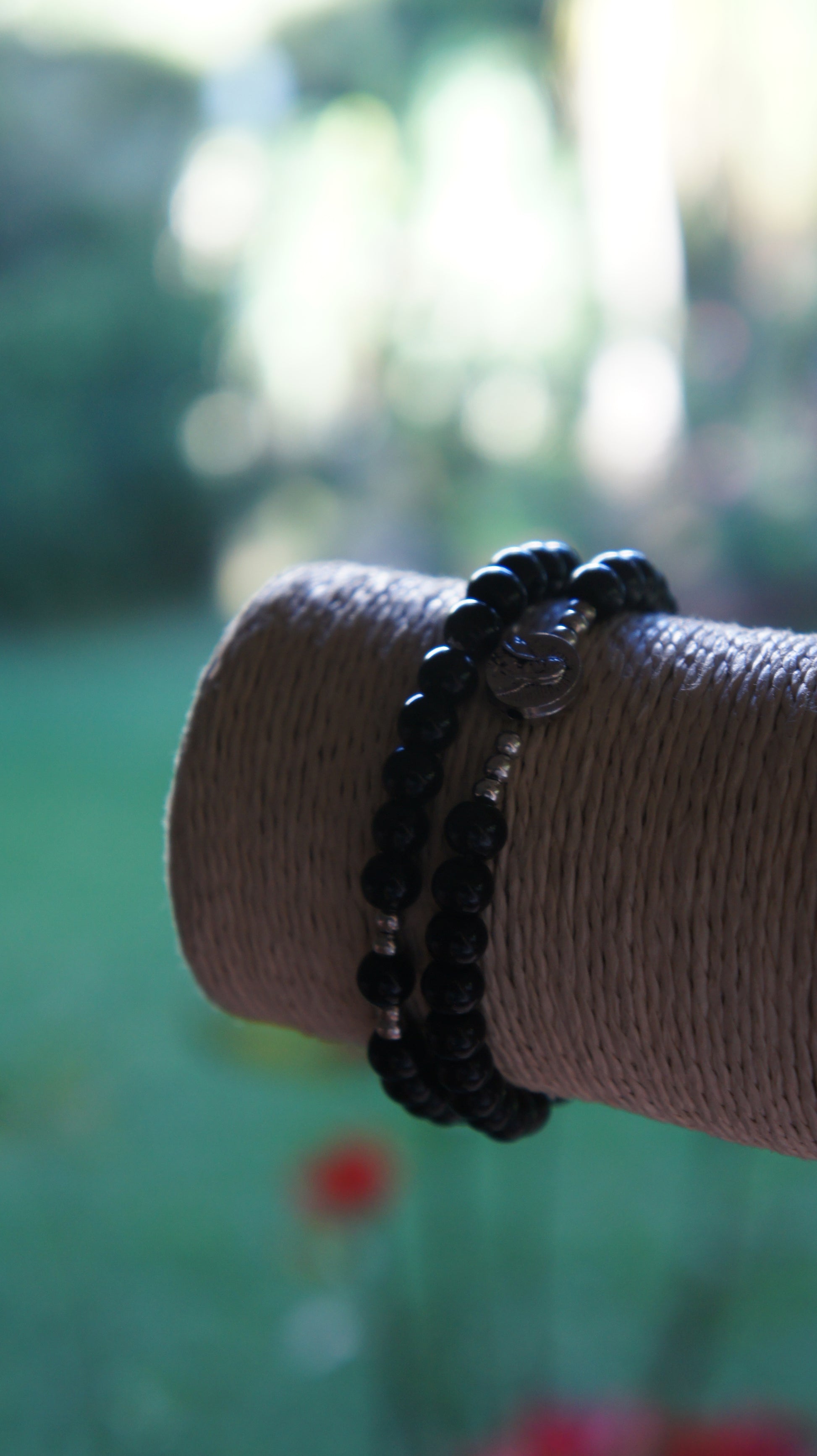 - Rosario de mano en cuentas y elástico.