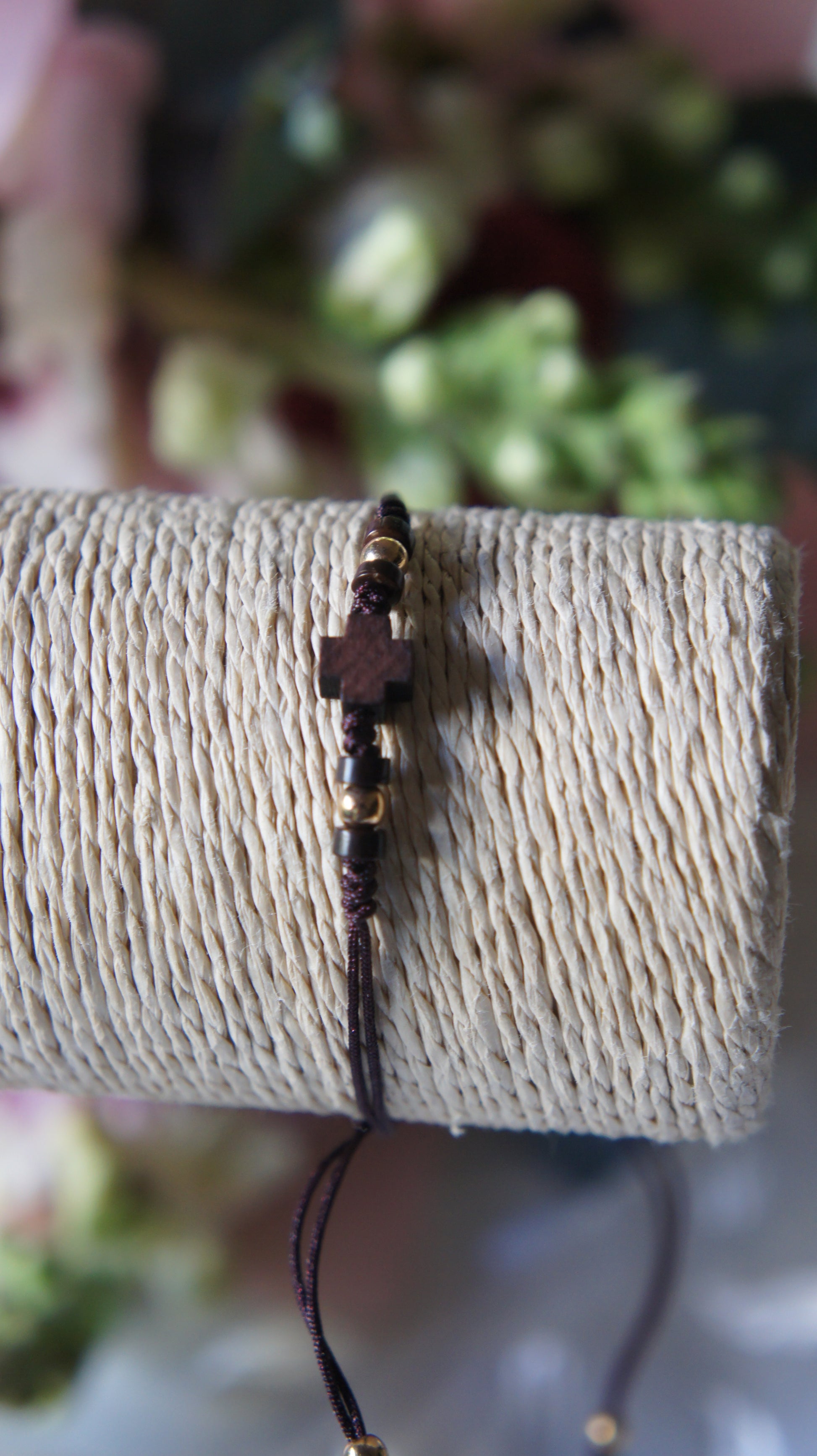 - Pulsera café ajustable de hilo